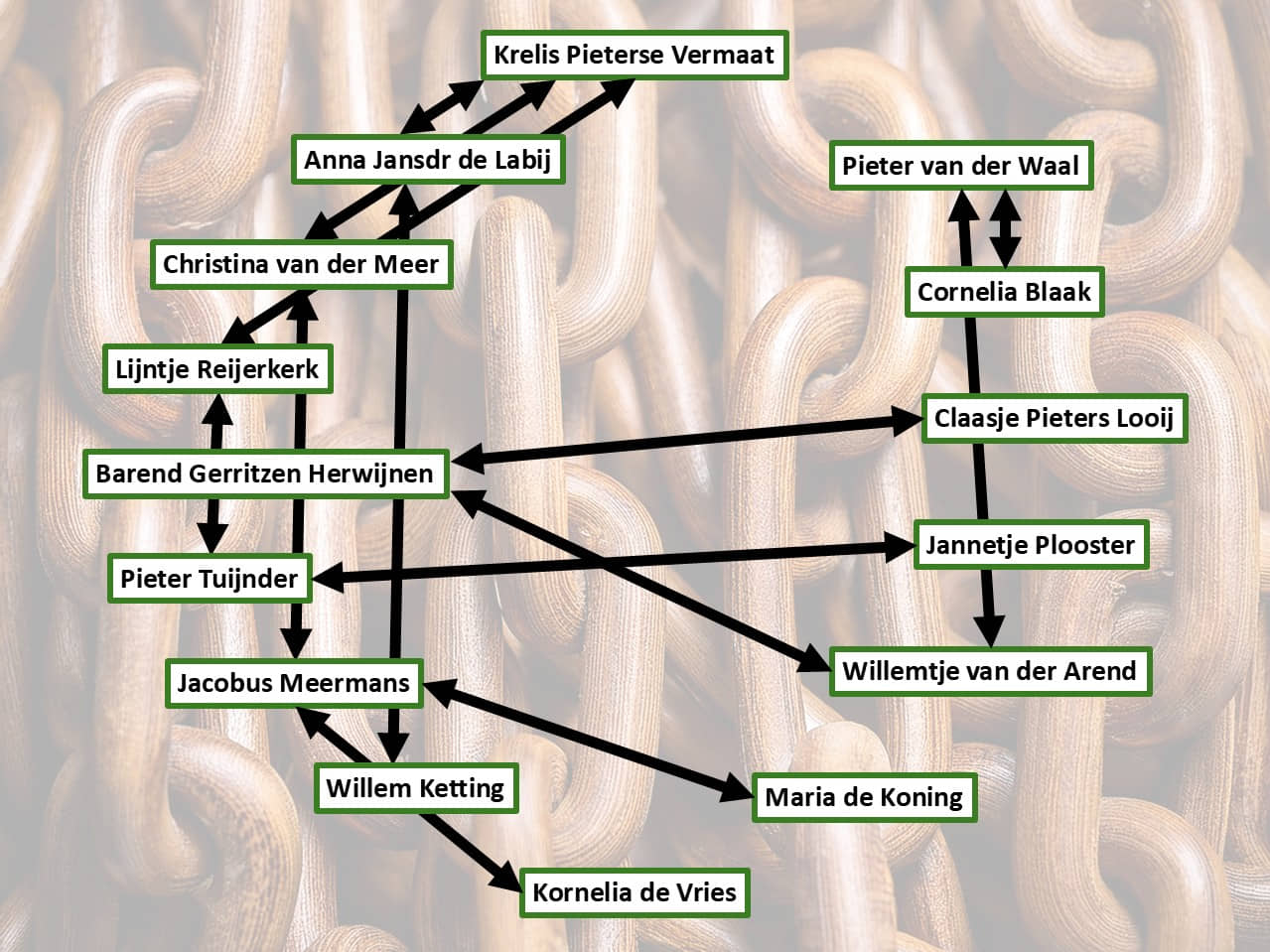Bron: Dick Krabbendam. Krelis Vermaat, het uitgangspunt in deze ketting, is te vinden in de kwartierstaat Koster