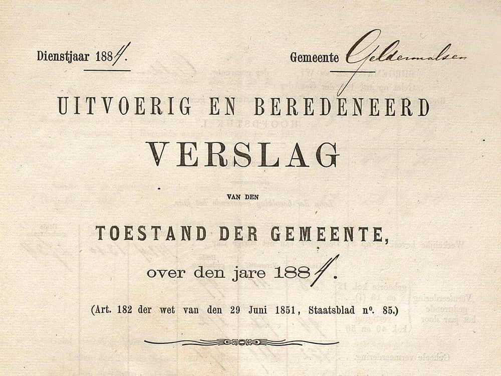 Hoewel sommige gemeenten daar al flink eerder mee begonnen, werd het bij de invoering van de Gemeentewet in België in 1836 en in Nederland in 1851 voor elke gemeente verplicht gesteld om een zogeheten “verslag over den toestand der gemeente(zaken)” op te maken. Deze verplichting gold in Nederland tot 1937, maar verschillende gemeenten zijn nog langer van deze verslagen blijven maken.
