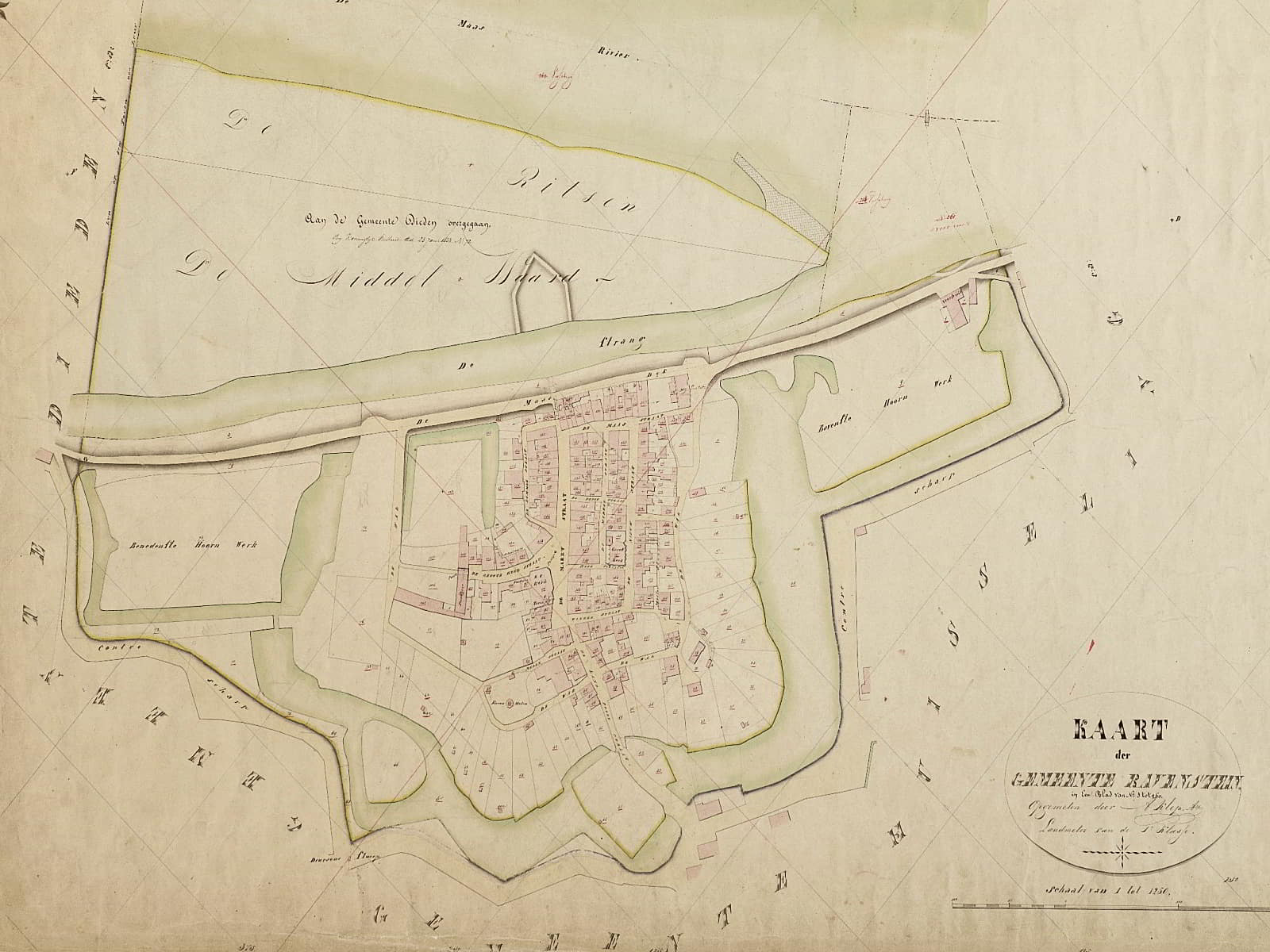 Dus weer in schepenakten gaan zoeken en gevonden dat Geurt (soms ook Goort genoemd) Aertz en zijn eerste vrouw Helena een ‘behuijsinge’ kochten in Ravenstein. Een leuk verhaal. Er stond wel enige informatie bij over welk huis het was, naast wie en zo, maar op een oude kaart kon ik het plekje niet vinden. Joost vertelde dat hij na lang puzzelen aan de hand van de aktes en het cijnsboek [belastingenboek] en het herkennen van een naam van de buurman, het huis had gevonden. En dat huis is er nog steeds! Wezen kijken, en dan voelt het toch heel apart: Geurt heeft hier gewoond, en door het dorp gelopen!