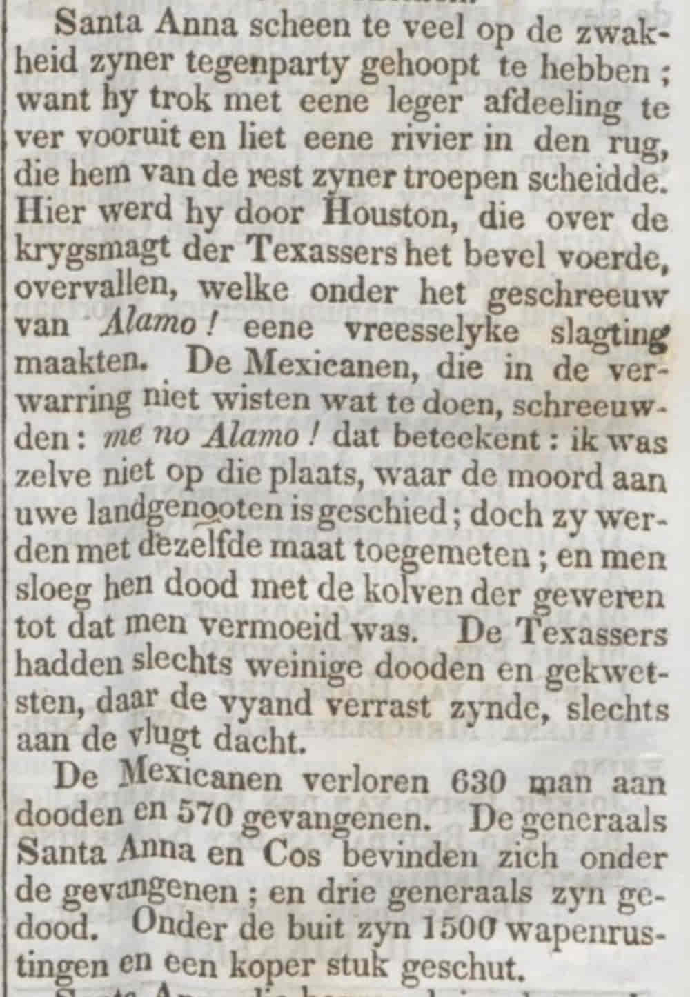 - In Texas vindt de “Slag bij de Alamo” plaats, wat een belangrijke gebeurtenis is in de Texaanse onafhankelijkheidsstrijd tegen Mexico. ➔Krantenbericht