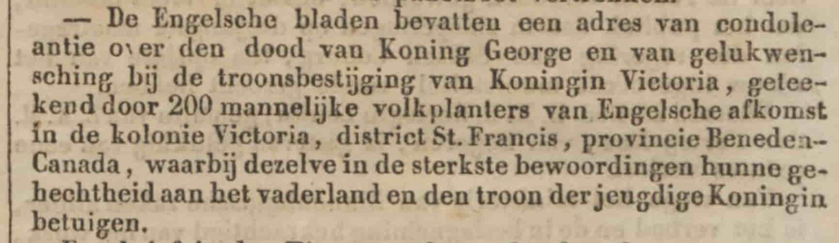 - 1838 – Koningin Victoria bestijgt de troon van het Verenigd Koninkrijk waarmee de Victoriaanse periode begint. ➔Krantenbericht
