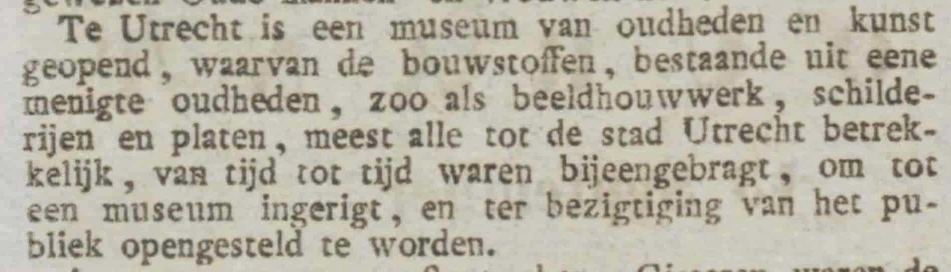- In Utrecht wordt het “Stedelijk Museum van Oudheden” geopend, het eerste in zijn soort in Nederland. ➔Krantenbericht