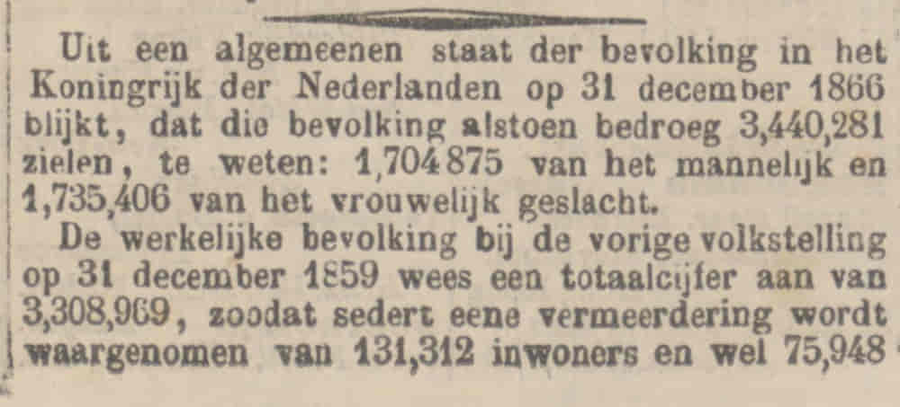 - 1866 – Op 31 december wordt er een volkstelling gehouden. ➔Krantenbericht