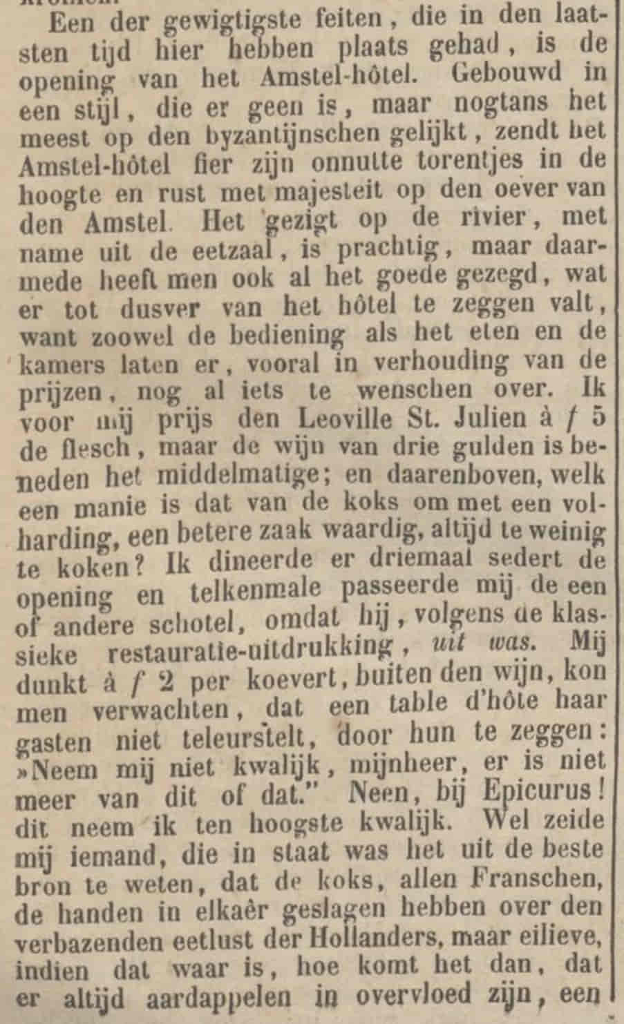 - 1867 – Opening van het Amstel Hotel in Amsterdam, een belangrijk architectonisch en technisch hoogstandje en symbool van luxe en moderniteit. ➔Krantenbericht
