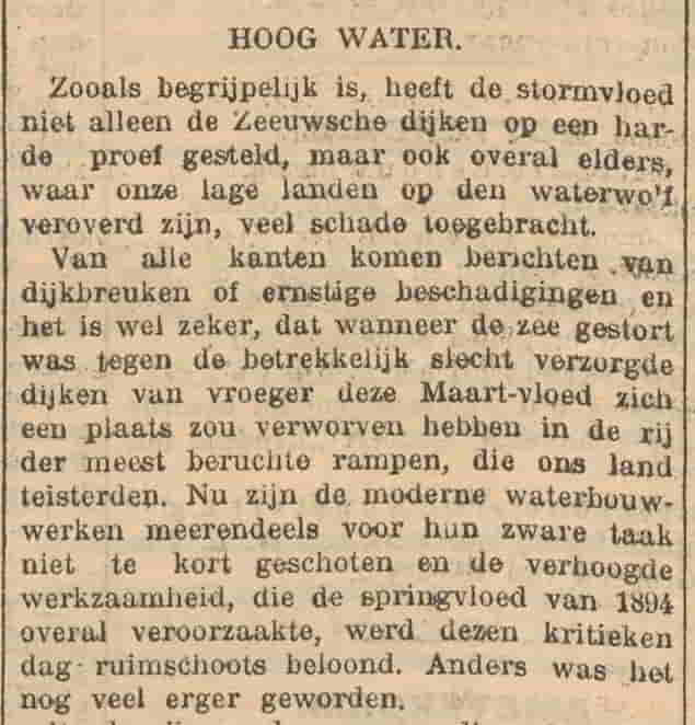 - 1906 – Door een zware storm worden vooral Vlaanderen en Zeeland getroffen door een watersnood, in Terschelling vergaat een schip waarbij 8 opvarenden verdrinken. ➔Krantenbericht