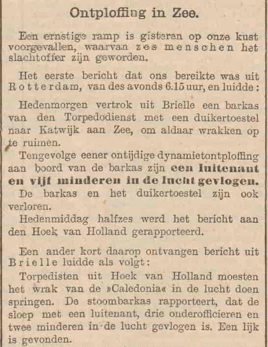 - 1909 – Bij het opruimen van een scheepswrak bij Katwijk ontploft de lading met picrinezuur, er zijn 6 doden. ➔Krantenbericht